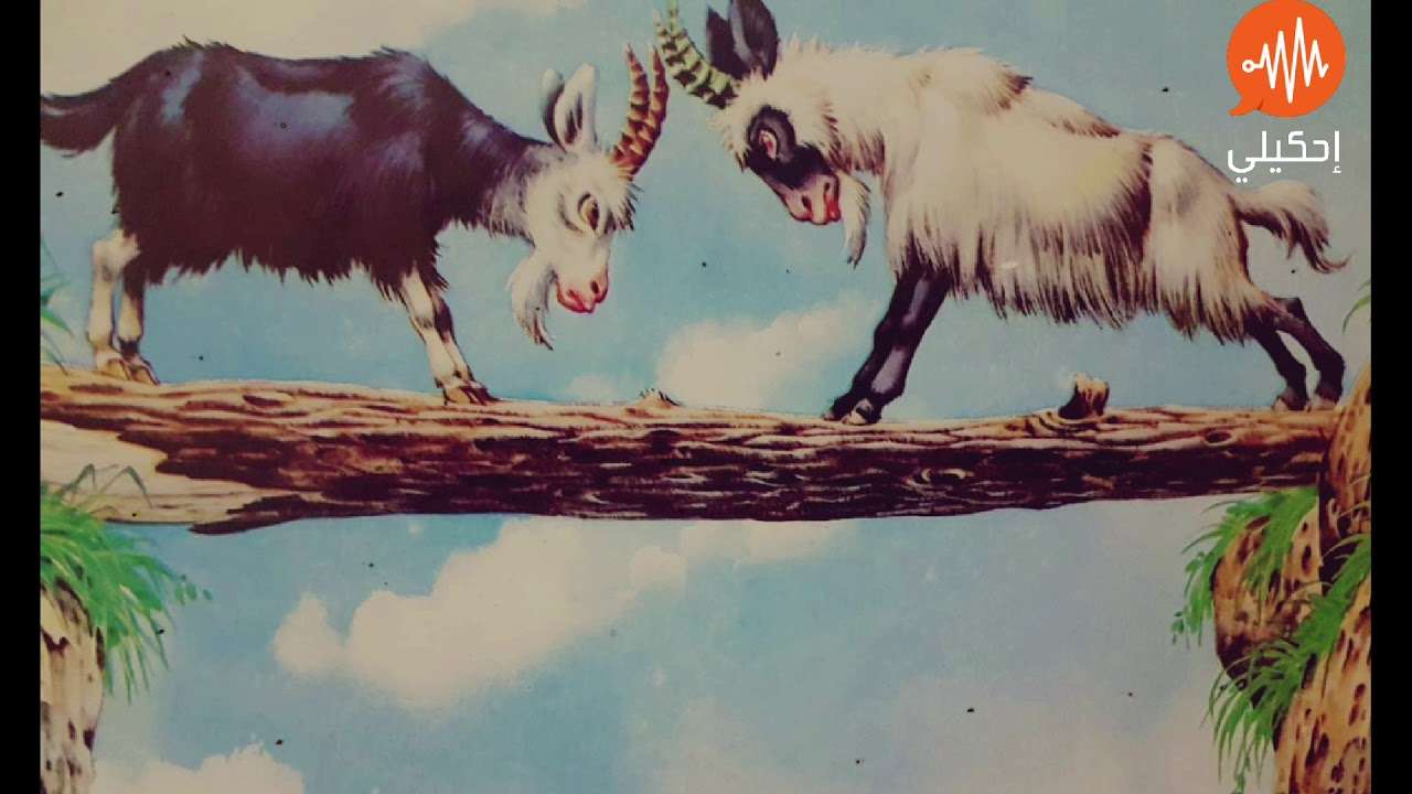 يُحكى انه كان هناك غابة كبيرة ، كانت هذه الغابة مقسومة الى نصفين حيث يفصل بينهما نهر كبير ، يربط جزئي الغابة جسر خشبي ولكن الجسر كان ضيقا جدا ولايكفي لمرور اكثر من حيوان ، في يوم من الايام كان هناك ماعز يعبر ذلك الجسر ، وفي نفس الوقت كان هناك ماعز آخر يعبر من الجانب الآخر من الجسر ، تقابل الماعزان في المنتصف ، طلب احدهما من الآخر ان يعود ادراجه حتى يتمكن هو من العبور ، لكن الماعز الآخر رفض التراجع ، ظل الماعزان يتجادلات و يتناطحان حتى سقطا معا في النهر ولم يتمكن اي منهما من عبور الجسر ، وكانت هذه هي نهاية العناد.