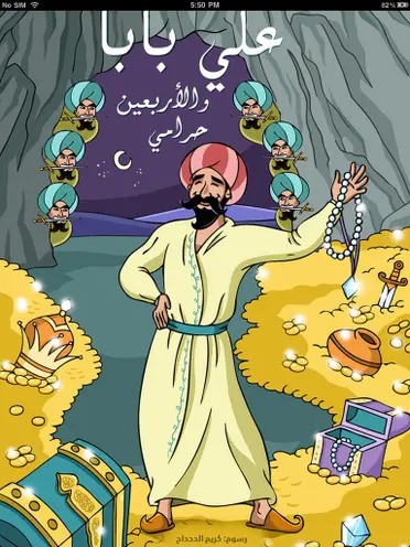 تدور أحداث هذه القصة حول شخص يُدعى علي بابا وزوجته الذكية مرجانة اللذين كانا يعيشان في إحدى مدن بلاد فارس، وكان علي بابا يعيش في فقر وعوز وحاجة، بينما يعيش أخوه قاسم عيشة مليئة بالرغد والرفاه والمال والعز بعد أن تزوّج من ابنة تاجر ثريّ كبير وتنَعّم في ثروته بعد انقضاء أجله، ولم يكن قاسم يأبه لحاجة أخيه علي بابا، حيث كان يعمل بالتجارة بينما كان أخوه بالكاد يجد قوت يومه من بيع الحطب الذي كان يجمعه على ظهر حماره الضعيف. خرج علي بابا ذات مرّة مع حماره، وجلس ليرتاح قليلاً بعد أن أعياه التعب، إلّا أنّ صوت حوافر الخيول القادمة من بعيد قد أرعبه فهرع راكضاً مختبئاً وراء صخرة قريبة، وأثناء اختبائه رأى مجموعة من اللصوص الملثمين يتوجهون إلى مغارة كبيرة تغطي بابها صخرة عظيمة تقع داخل جبل، ولما وصل اللصوص إلى المغارة قالوا: “افتح يا سمسم”، فانشق الجبل وفُتحت لهم مغارة مليئة بالذهب والجواهر والأموال فدخلوا إليها وجمعوا ما جمعوا منها على ظهر خيولهم وانصرفوا وقد أقفلت المغارة بعدهم بابها. انتظر علي بابا حتى انصرف اللصوص والذهول يملؤه، وقرر أن يجرّب بنفسه فتح هذه المغارة السحرية ليتنعّم بما هو موجود فيها، وبالفعل انشق الجبل ثانية وفتحت المغارة بابها بعد أن قال علي بابا جملته السحرية “افتح يا سمسم”، وأخذ يملأ جيوبه وما على ظهر حماره من سلال بالنقود الذهبية والجواهر والفرحة تغمره، وبعدها عاد راجعاً إلى بيته ليحكي ما حدث معه لزوجته العزيزة مرجانة. أرسل علي بابا مرجانة لتقوم باستعارة مكيال من أخيه قاسم، إلّا أنّ ذلك جعل الشك يراود زوجة قاسم الشريرة، حيث إنّ علي بابا لا يملك ما يكيله، فلماذا يريد المكيال! فكرت زوجة قاسم في حيلة ذكية تكشف فيها أمر هذا الرجل فقامت بوضع العسل في قاع المكيال لتعرف ماذا أراد علي بابا أن يكيل، ولما أعاد علي بابا المكيال إلى زوجة قاسم، نظرت إليه فإذا بعملة نقدية قد التصقت به، ففوجئت بذلك ودفعت زوجها قاسم إلى الذهاب إلى أخيه لمعرفة سرّه. تحايل قاسم على علي بابا بمعسول الكلام حتى عرف سرّ المغارة، لكنّه وعده بألّا يذهب إليها بمفرده، إلّا أنّ جشعه جعله ينقض عهده ويتوجّه إلى المغارة مع مجموعة من البغال المحمّلة بالسلال ليملأها بما يستطيع من جواهر وأموال، استطاع قاسم أن يدخل إلى المغارة بعد أن قال “افتح يا سمسم”، وقضى فيها وقتاً طويلاً جداً يكنّز الذهب ويحمل كل ما استطاع من نقود وجواهر، ولما شعر بأنّ عليه الخروج من هذه المغارة كان قد نسي الجملة السحرية، فأخذ يحاول ويقول “افتح يا بمبم” “افتح يا دقيق” والكثير من المحاولات الأخرى التي لم تنجح، وأثناء وجود قاسم في المغارة جاء اللصوص فرأوه فيها فنالوا منه وقتلوه ورموه أرضاً. خرج علي بابا للبحث عن أخيه عند اختفائه لمدّة طويلة، ولما وجده قتيلاً بكى عليه بكاء شديداً وأخذه لدفنه، ولما عاد اللصوص إلى المغارة في اليوم التالي ولم يجدوا جثة قاسم علموا أنّ له شريكاً، فأخذوا يبحثوا عمّن توفي في المدينة منذ وقت قريب، وعرف أحد اللصوص أنّ لقاسم أخاً يدعى علي بابا وأنّه لا بدّ شريكه، فوضع إشارة بالطباشير الأبيض على باب بيته ليعرفه بقيّة اللصوص وينالوا منه ليلاً، إلأّ أن مرجانة الذكية تفطّنت لخطتهم ووضعت علامات مشابهة على بقية بيوت المدينة فضيّع أثره اللصوص، إلّا أنّهم بحثوا عنه مجدداً ووجدوه، ونزلوا عنده ضيوفاً بحيلة تاجر زيت يحمل أربعين جرّة قد تقطّعت به السبل ونزل ضيفاً عند علي بابا الذي لم يكن يعلم أنّ في كل جرّة من هذه الجرار لصاً قد اختبأ فيها للنيل منه، نزل الضيف في منزل علي بابا ووضع جرار الزيت في الفناء الخلفي إلى أن يحين وقت الخطة، إلّا أنّ مرجانة الذكية تنبهت ثانية إلى خدعتهم عندما سمعت همساً قادماً من أحد الجرار يقول “هل حان الوقت؟” فركضت وأحضرت حجارة ثقيلة أغلقت بها فوهات الجرار حتى مات اللصوص فيها خنقاً، فيما أخبرت علاء الدين عن مخطط ضيفه الشرير وأرته الخنجر الذي يحمله على خصره لقتله، فقام بالتخلّص 