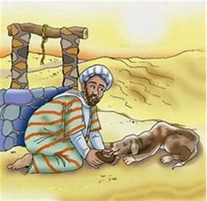 فى يوم من الأيام كان هناك رجل يسير وحيداً فى الصحراء مسافراً إلى بلاد بعيدة، وكان الجو شديد الحراراة فعطش الرجل عطشاً شديداً، بدأ يبحث عن الماء حتى وجد بئراً عميقاً ملئ بالماء العذب، فنزل الرجل وشرب وحمد لله عز وجل، وبدأ يتابع سيرة من جديد فوجد كلباً صغيراً يلهث من العطش، وقف الرجل أمام الكلب وفكر قليلاً كيف يساعد هذا الكلب ويجعلة يشرب من الماء، فرجع الرجل إلى البئر ومعه الكلب وبدأ يملاً حذاءة من الماء ويقدمة للكلب حتى يشرب ويرتوي .