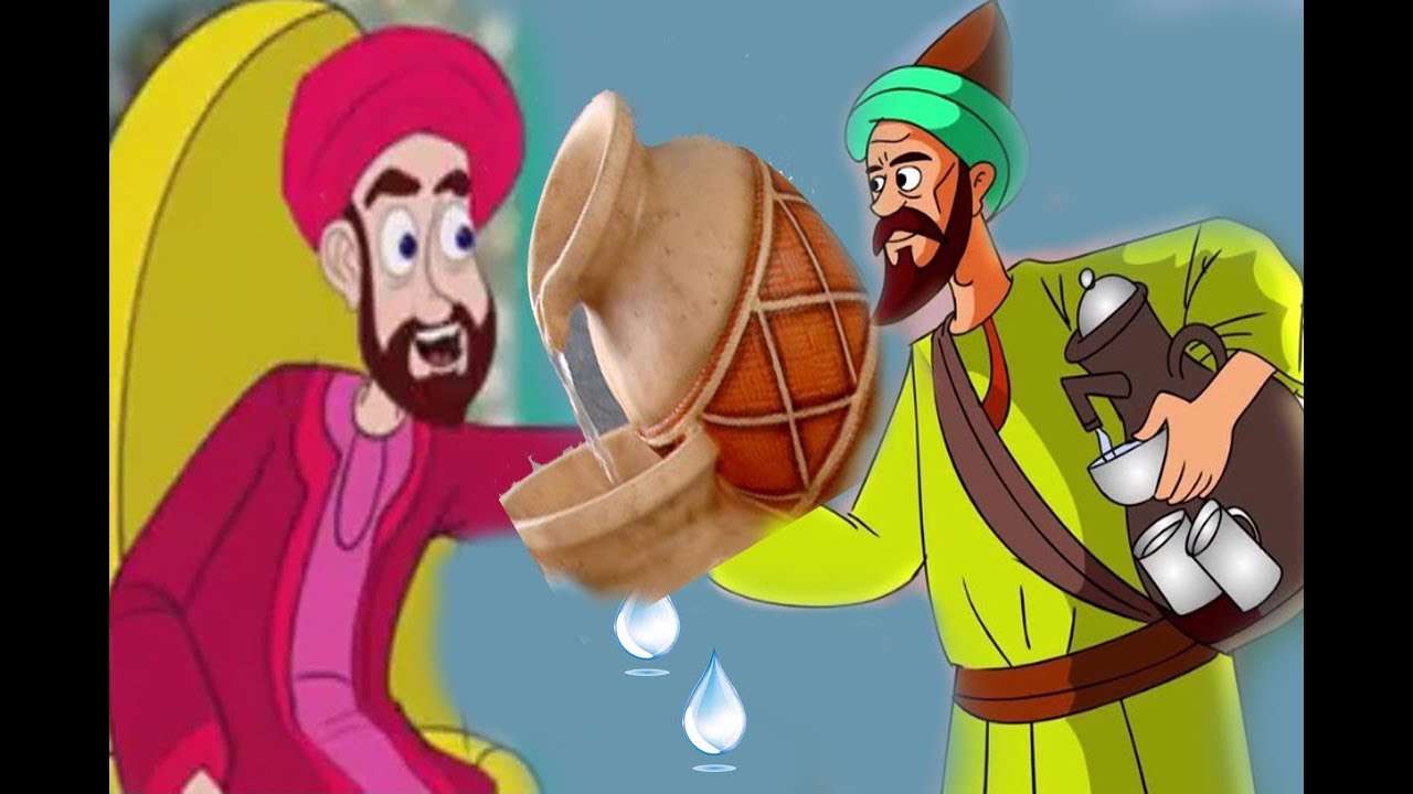 ن هناك في قديم الزمان ساقي يدعى “محمد”، كان يشتهر بطيب شخصيته وحبه الشديد للناس، كان يحمل كل صباح جرته الطينية المليئة بالماء ويذهب ليبيع الماء للناس، عرفه الناس بنظافته الشديدة وحسن أخلاقه لدرجة أن سيرته وصلت إلى الملك وأعجب به وبشخصيته وخلقه كثيرا لدرجة أنه طلب من وزيره البحث عن ذلك الساقي وجلبه إليه في أقرب وقت ممكن، بحث الوزير في جميع الأسواق عن الساقي حتى وجده، وحينما أخذه الوزير إلى الملك فرح “محمد” كثيرا بالفرحة التي رآها في عيون الملك والسرور بقلبه عند رؤيته، وعلى الفور أخبره الملك قائلا: “إنني معجب كثيرا بشخصيتك الخلوقة، فقد وردتني الأحاديث الطيبة عنك وعن سمعتك وعن حب الناس لك”.