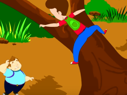 يُحكى انه كان هناك صديقين سامر و فادي يسيران في الغابة الشاسعة ، و كان الصديقان مقربان جدا من بعضهما البعض فدائما كانا معا في الغابة يلعبون و يلهون هنا و هناك ، و في يوم من الايام و بينما كان الصديقان يسيران في الغابة ظهر امامهما دب عملاق متوحش ، خاف كلا من سامر و فادي و لكن سامر كان جبان جدا فتسلق الشجرة التي بجانبه.