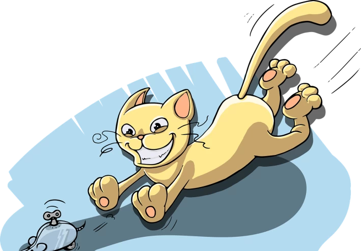 في يوم من الأيام عندما كان الفأر يبحث عن الطعام، شاهد ذئبًا كبيرًا يقترب منه ببطء، وعندما أدرك الفأر أنه في خطر، بدأ يركض بأقصى سرعته. ولكن الذئب لحق به وأمسكه بين فكيه الضخمين. وكان الفأر متأكدًا من أنه لا يمكنه النجاة لكنه قرر أن يحاول الهروب بأي طريقة ممكنة. فاستخدم ذكائه وحنكته وبدأ يعض الذئب بقوة في أنفه مما جعل الذئب يتألم ويتراجع عن التهام الفأر.