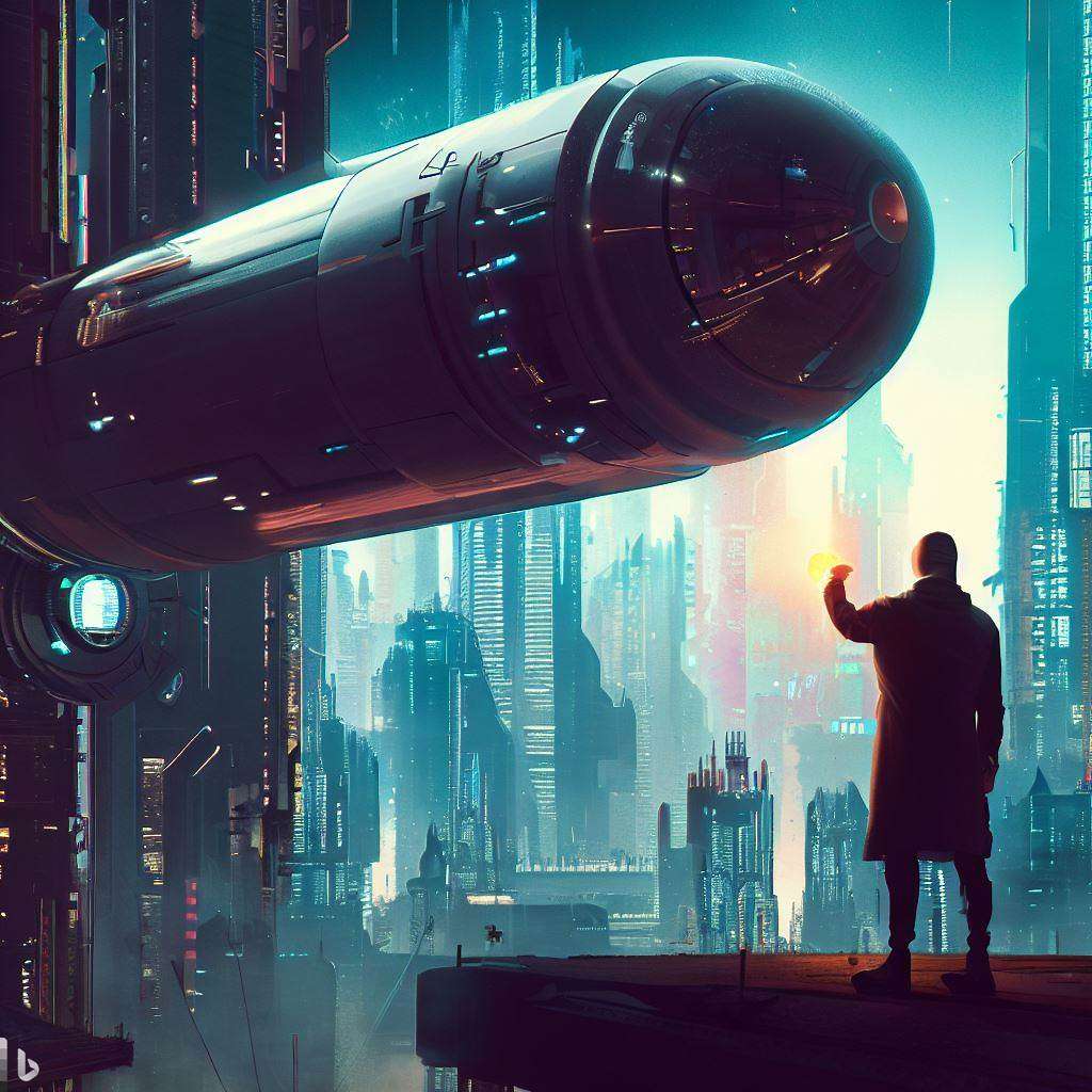 كان عمر في مدينة ضخمة وحديثة. كانت المدينة مليئة بالأبراج والطائرات والروبوتات. كانت المدينة تضيء بالأضواء والإشارات والشاشات. كان صوت المدينة صخبًا وضجيجًا.