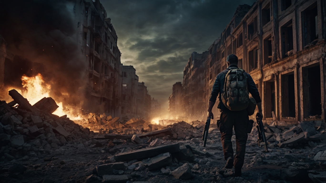 كانت السماء رمادية اللون،الرياح تهب على المدينة المدمّرة، تنشر معها رائحة البارود والدخان. المباني المهدّمة تقف مثل أطلال، شاهدة على أيام مضت حين كان الناس يضحكون في الشوارع، قبل أن تتحوّل الأرض إلى جبهة صراع دموي.